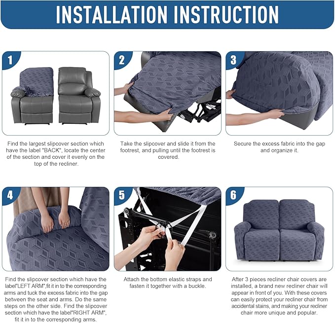 - KID AND PET FRIENDLY: Ideal for homes with children and pets, the reclining couch covers feature bottom elastic and anti-slip buckles to keep them in place, providing an extra layer of protection for your furniture