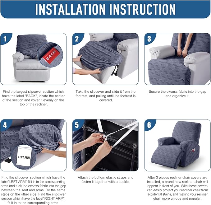 - KID AND PET FRIENDLY: Ideal for homes with children and pets, the reclining couch covers feature bottom elastic and anti-slip buckles to keep them in place, providing an extra layer of protection for your furniture