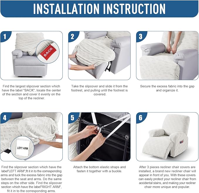 - KID AND PET FRIENDLY: Ideal for homes with children and pets, the reclining couch covers feature bottom elastic and anti-slip buckles to keep them in place, providing an extra layer of protection for your furniture