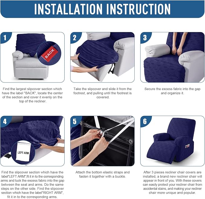 - KID AND PET FRIENDLY: Ideal for homes with children and pets, the reclining couch covers feature bottom elastic and anti-slip buckles to keep them in place, providing an extra layer of protection for your furniture