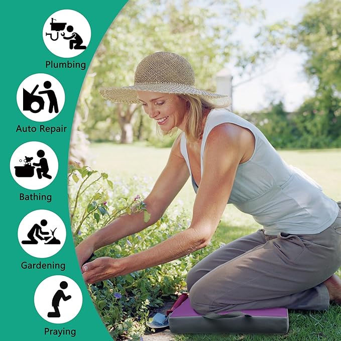 KI Store Garden Kneeling Pad Memory Form Knee Cushions for Gardening Extra Thick Knee Pad Water Resistant Prayer Pillow for Work Yoga Physical Therapy Purple