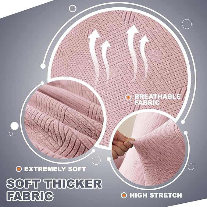 JIVINER Recliner Couch Cover, Jacquard 5 Piece Stretch Sofa Covers for 3 Cushion Reclining Lazy Boy Soft Washable Sofa Slipcovers Protector with Pockets (Recliner Sofa, Dusty Pink)