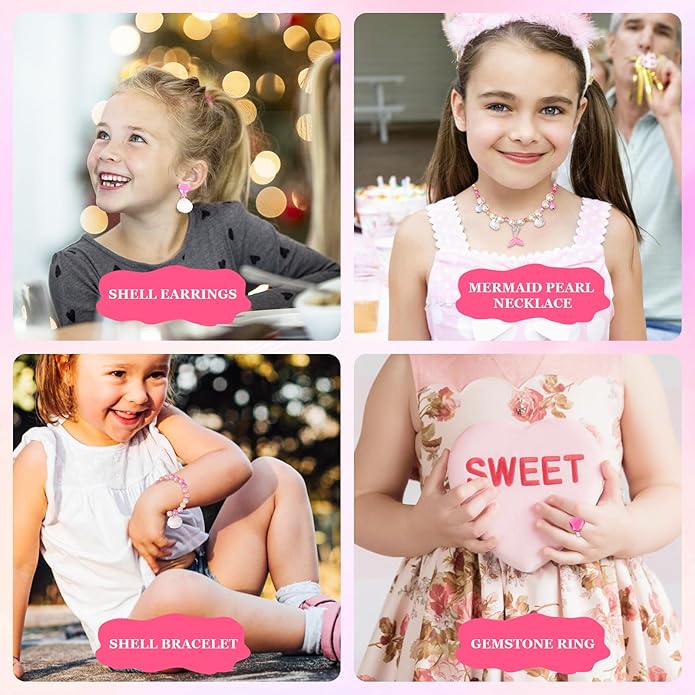 - Unique Mermaid Design: This jewelry set features a charming and colorful mermaid design, making little girls look even more beautiful and enchanting.