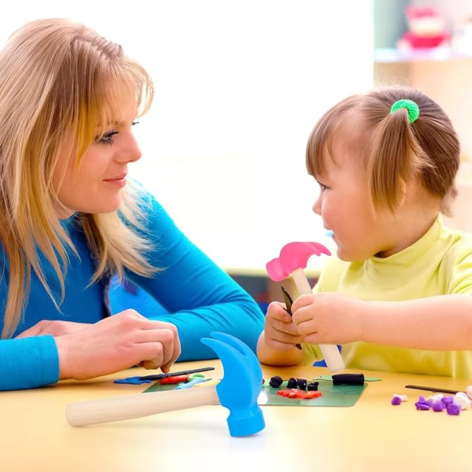 - Size: The package includes 1pcs blue wooden hammer toy and 1pcs rose red wooden hammer toy, each wooden hammer size is 6.5 x 3 inch, comact size and lightweight, suitable for kids to play and convenient to carry.