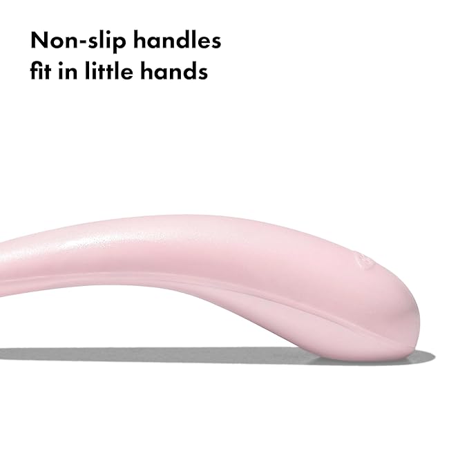 - Curved, non-slip handles are weighted and easy for little ones to hold