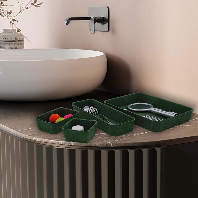 - 【Sustainable material】 recycled felt with a comfortable touch feeling. no noise like plastic keeps stuff from flying around in the drawer. The soft felt material protects your valuables from scratches while adding a touch of sophistication to any space.