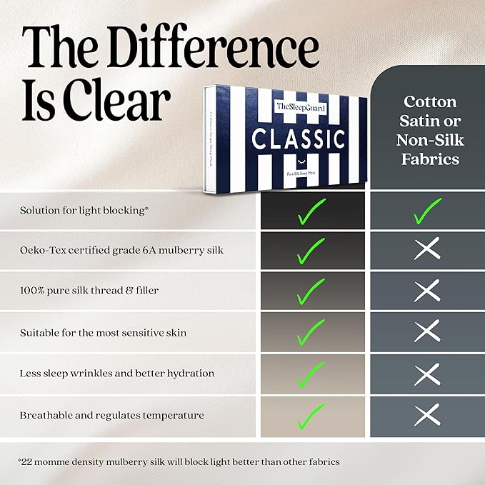 - â INVEST IN YOUR SLEEP - Experience TheSleepGuard difference with our luxury sleeping masks. Crafted from the highest grade 6A Mulberry silk at 22 momme and certified by Oeko-Tex to ensure you sleep soundly. Remember, better sleep leads to a better you.