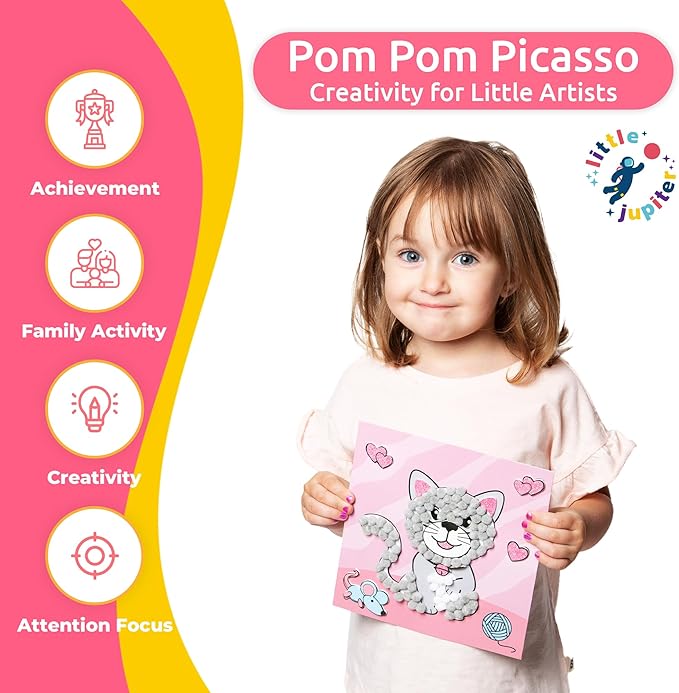 - The Best Gift For Kids : Little Jupiter craft kits for kids ages 3-5 make a great gift. Perfect for birthdays, holidays, Christmas, Hanukkah, & more. Pom pom crafts make the perfect preschool crafts for kids ages 3-5.