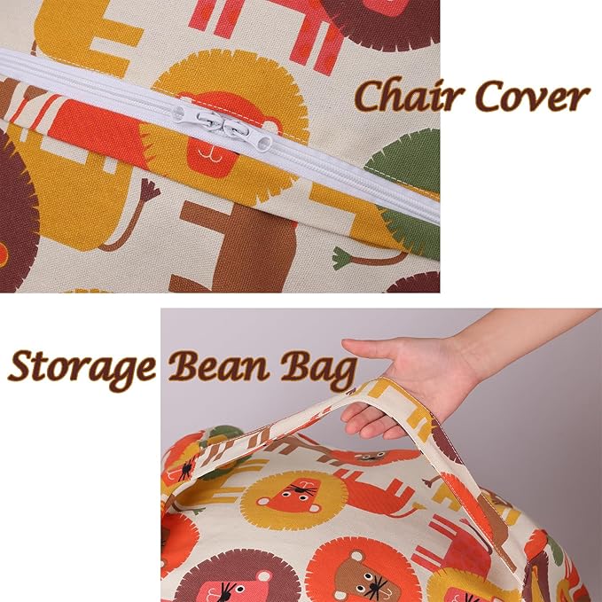 LMYOVE Stuffed Animal Storage Bean Bag Chair Cover for Kids, Zipper Storage Bean Bag for Organizing Plush Toys for Girls and Boys (26", Cartoon Lion)