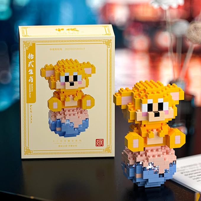 - 12 Mini Animals Building Blocks Set - 12 animals mini blocks set, including mouse, cow, tiger, rabbit, dragon, snake, horse, sheep, monkey, rooster, dog, pig.