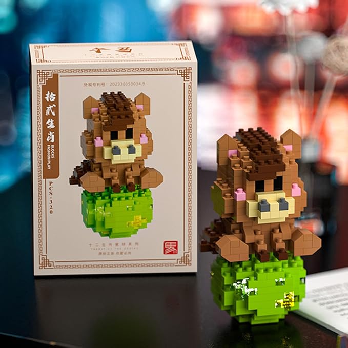 - 12 Mini Animals Building Blocks Set - 12 animals mini blocks set, including mouse, cow, tiger, rabbit, dragon, snake, horse, sheep, monkey, rooster, dog, pig.
