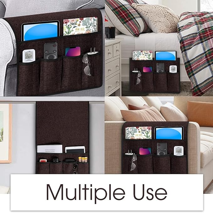 - 【Handy Pockets】6 pockets of the armrest organizer are designed for your necessities. You can put newspaper, magazines, iPad and tablet into the two largest pockets, remote controls, eye-glasses, mobile phones and other portable devices into the four standard pockets, keep them handy whenever you need them