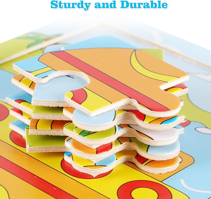 - DURABLE AND SAFE MATERIALS: Crafted from top-quality wood, our transportation-themed puzzles prioritize safety and longevity. The sturdy construction and beautiful vehicle prints ensure durability, while the rounded edges and large puzzle pieces minimize any risk of accidents, providing parents with peace of mind during playtime.