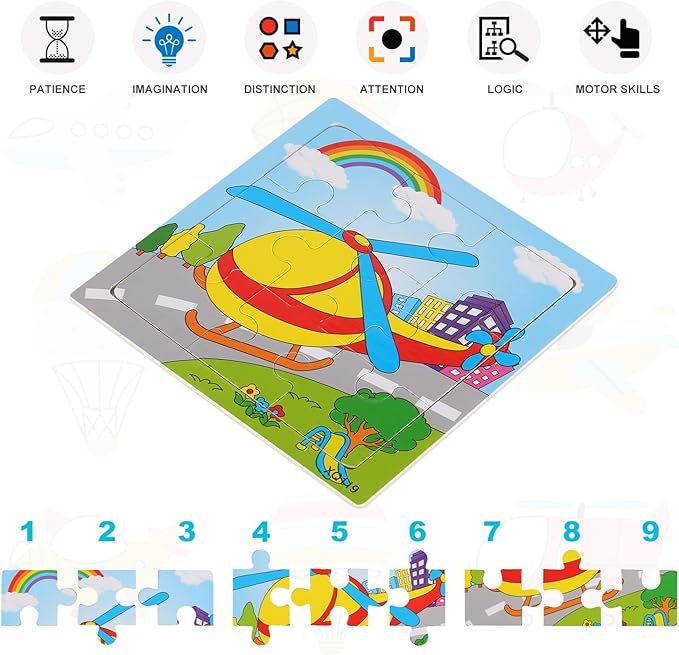 - ENJOYABLE LEARNING EXPERIENCE: Our 9-piece transportation-themed puzzles transform learning into an exciting adventure for kids! Crafted from high-quality wood, these delightful jigsaw puzzles ensure that education is both enjoyable and entertaining, fostering a love for learning while having a blast.