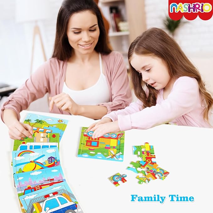 - VIBRANT AND CAPTIVATING: Ignite your child's imagination with a set of 6 colorful jigsaw puzzles featuring various transportation modes. The vibrant designs capture kids' attention, making the process of assembling these puzzles not only educational but also visually stimulating. Ideal for children aged 2 to 5, these puzzles guarantee hours of engaging play.
