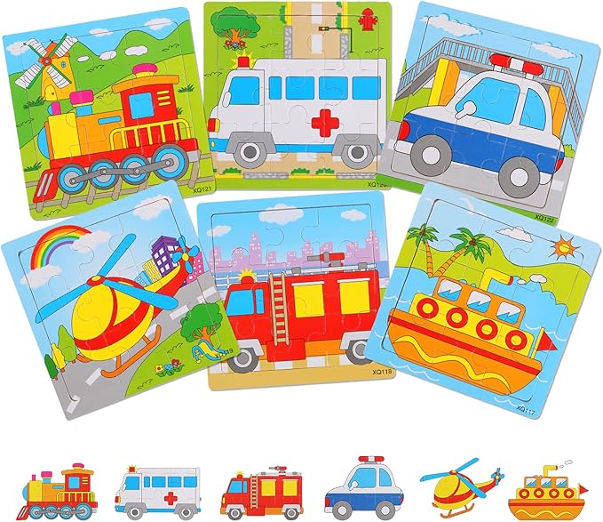 - ADORABLE GIFT OPTION: Surprise your little ones with this delightful transportation puzzle set, an ideal present for birthdays or Christmas. The 6 wooden puzzles are not just educational but also a charming gift that brings joy to children aged 2 and above. Share the love of learning and play by gifting these animated puzzles to the special kids in your life.