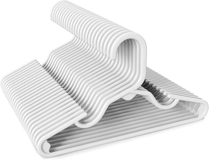 HOUSE DAY Premium Baby Hangers 60 Pack, 11 Inch Kids Plastic Hangers White, Slim Childrens Hangers for Infant, Toddler, and Child Clothes, Durable Baby Clothes Hangers for Closet