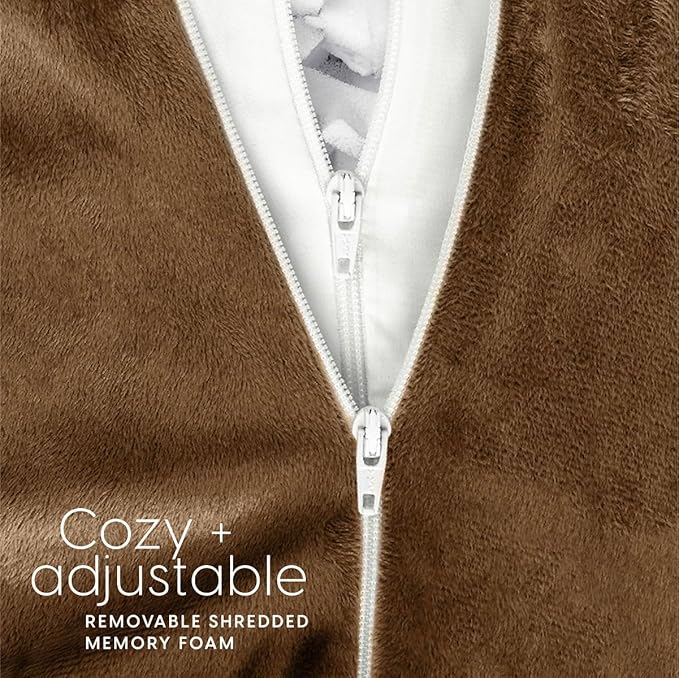Milliard Reading Pillow with Shredded Memory Foam, Large Adult Backrest with Arms, Back Support for Sitting Up in Bed with Washable Cover (Sit up Pillow) Brown
