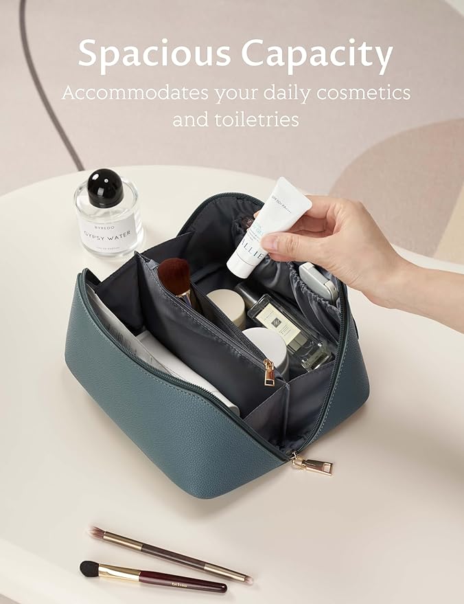 - Multifunctional & Practical: With ample space, it can keep all your makeup and toiletries in one place. Crafted from upgraded PU leather, it's waterproof, soft, comfortable, lightweight, and durable. Beyond its role as a cosmetic and toiletry bag, it also serves as a practical accessory organizer, enhancing convenience in every situation.