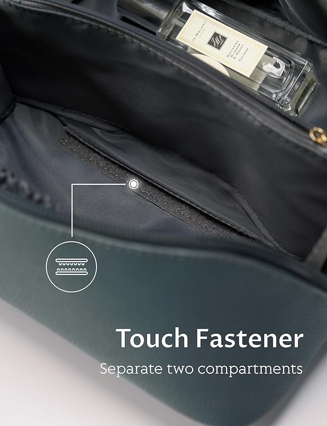 - Spacious Capacity: Measuring at 8.67 x 4.7 x 4.7inches, this bag features two main compartments with four small pockets for meticulous makeup organization. The two large compartments effortlessly accommodate travel-size toiletries and sizable skincare products, while the side pockets securely hold items like concealers, lipsticks, and other travel must-haves.