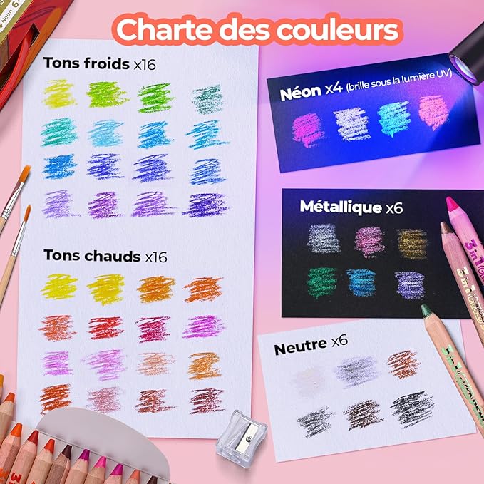 - 🖍️ COLORFUL LARGE SET WITH COLORING BOOK: The 48-piece set from Colozoo offers everything for young artists: sturdy children's pencils, a "coloring book for kids", a sharpener, and 2 brushes. These pencils, suitable for ages 3 and up, are specially designed for little hands to encourage early enjoyment in painting.