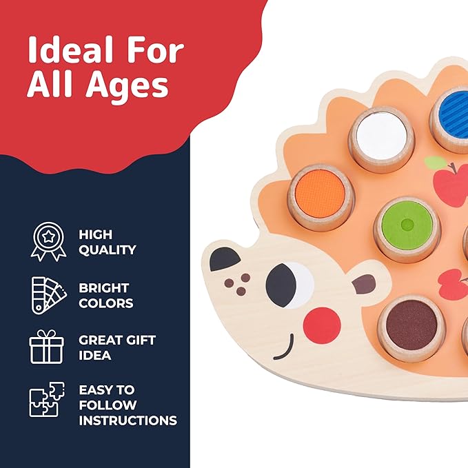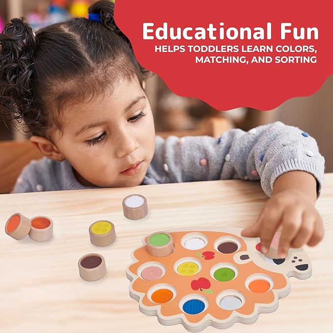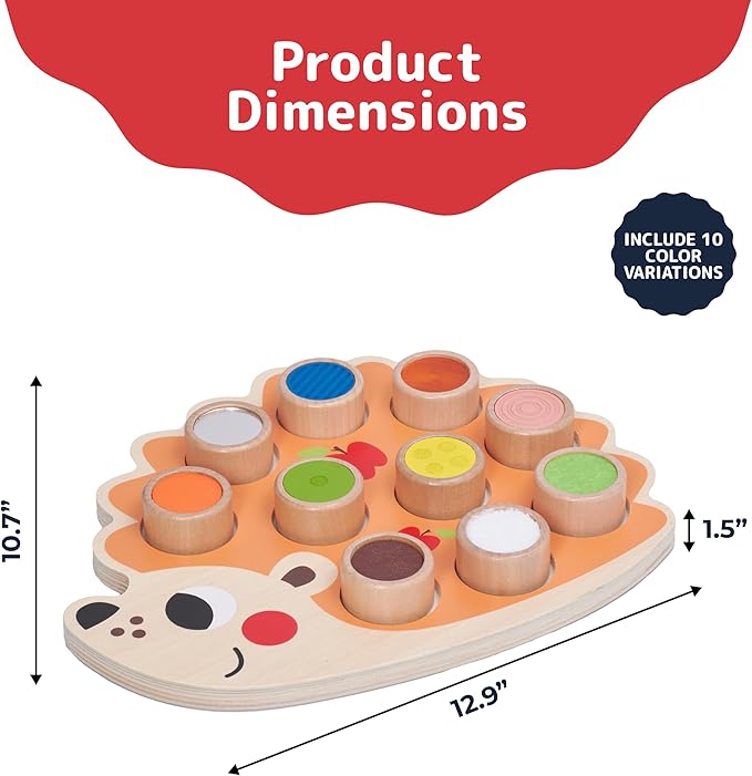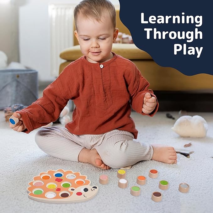 - SEE, TOUCH, SORT: Enhance your child's fine motor skills with our spike hedgehog toy. Its chunky, vibrant spikes stimulate senses and touch. This wooden Montessori toy is perfect for toddlers 12 months and up