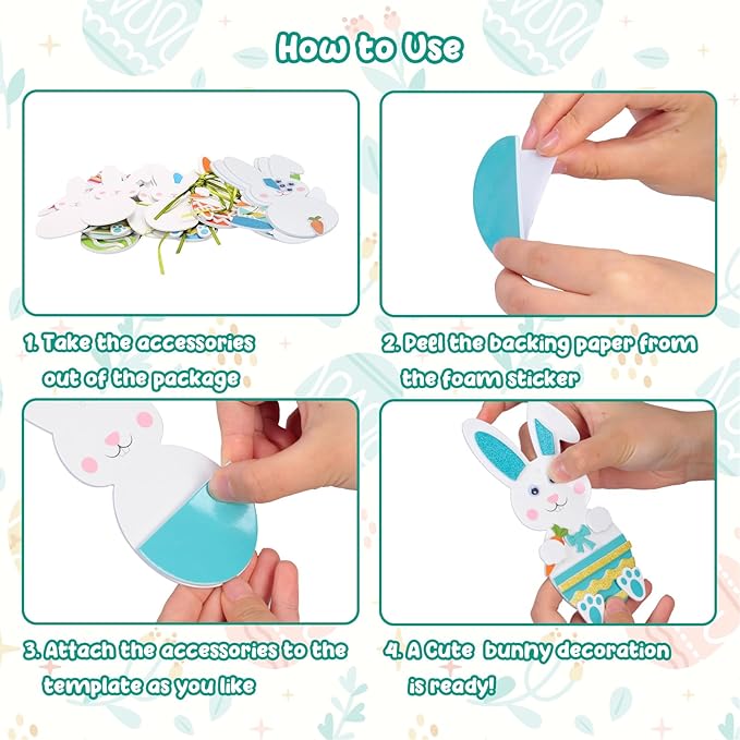 - Easter Craft Kit for kids:The EVA foam bunny craft for kids includes 12 pack of Easter bunny craft kits,such as bunny,foot,carrot, tie. etc,and have a lot of Easter foam stickers enough quantity to meet needs on a activity for kids,kids can make their own Easter arts crafts set to create a Easter atmosphere!