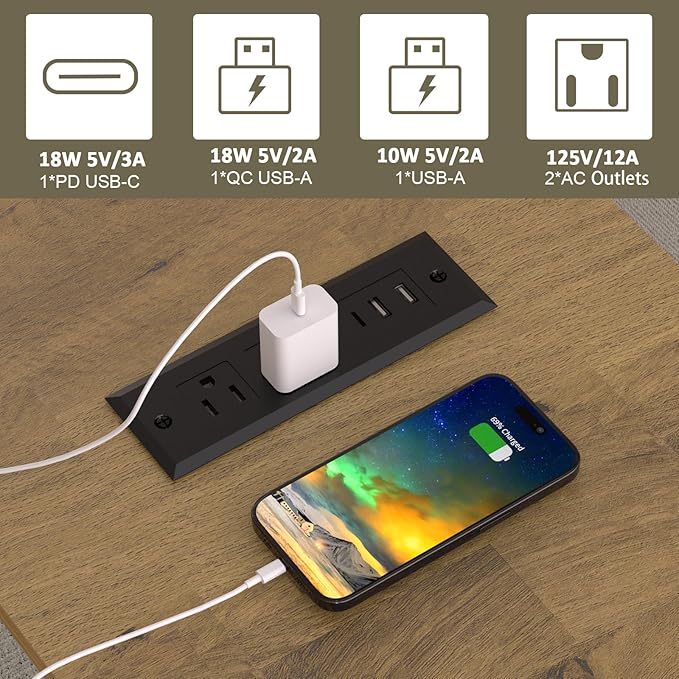 - Fast Charge Station-This living room end table with 18w fast charging can short the charging time by 2 times compare compared to a 10w. This nightstand comes with 2 standard AC power outlets, 1*PD Type-C USB port, 1*QC(3.0), and 1* USB port. No need to worry about finding your fast charger.