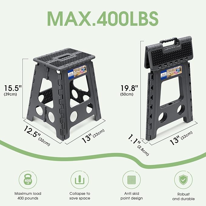 - 【Sturdy and Reliable】Our patented step stool with a pin structure,Max holds up to 400 lbs.Reach new heights with our portable stool design, heavy duty for adults and kids alike.