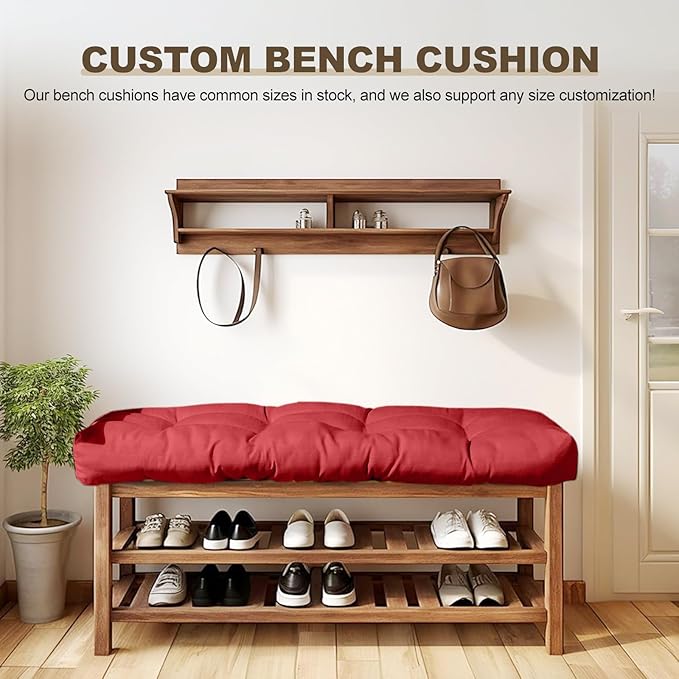 Bench Cushion 42 inches,Indoor/Outdoor Non-Slip Tufted Cushions, Premium Waterproof Linen, Soft Piano Sofa Cushions, Entryway Storage, Bay Window, High-Density Memory Foam(Dark Red-42x16x4in)