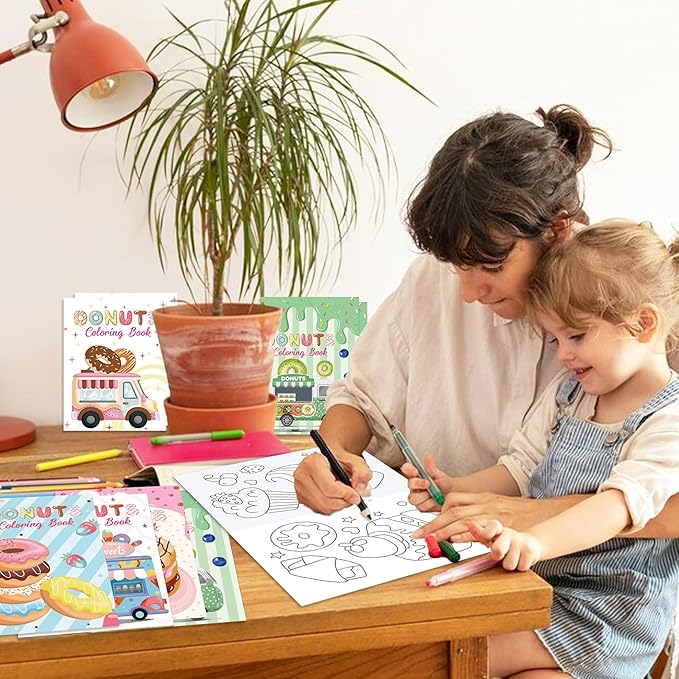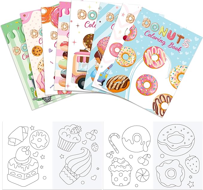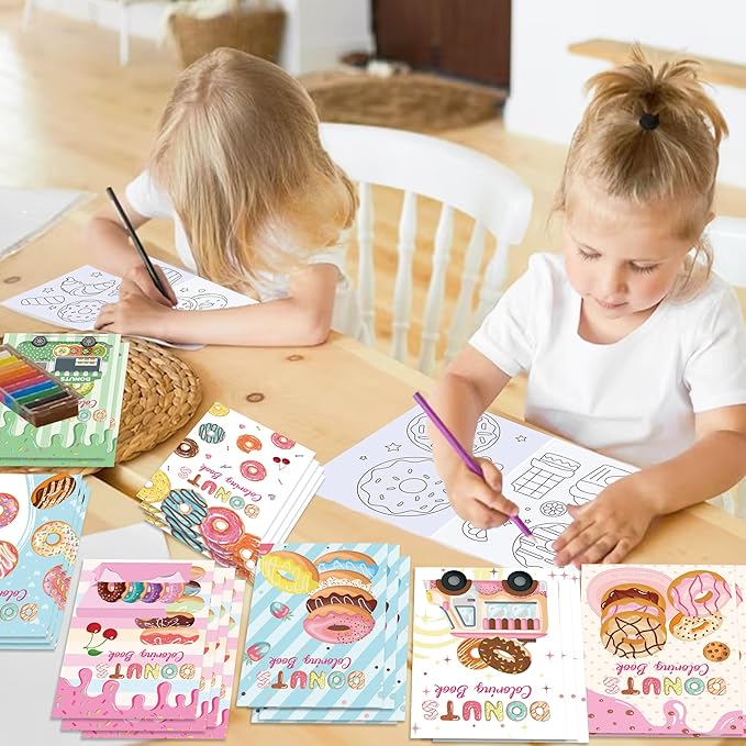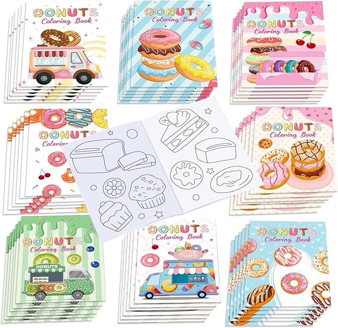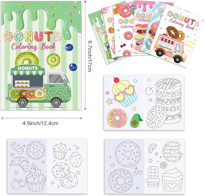 littkeef cliaet 12 Pcs Donut Coloring Books Donut Party Favors Bunnies Bulk Mini Coloring Books Bulk for Kids DIY Art Drawing Activity Book Set for Donut Themed Birthday Party Supplies