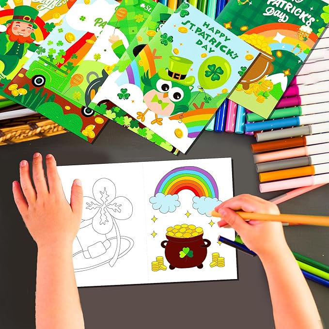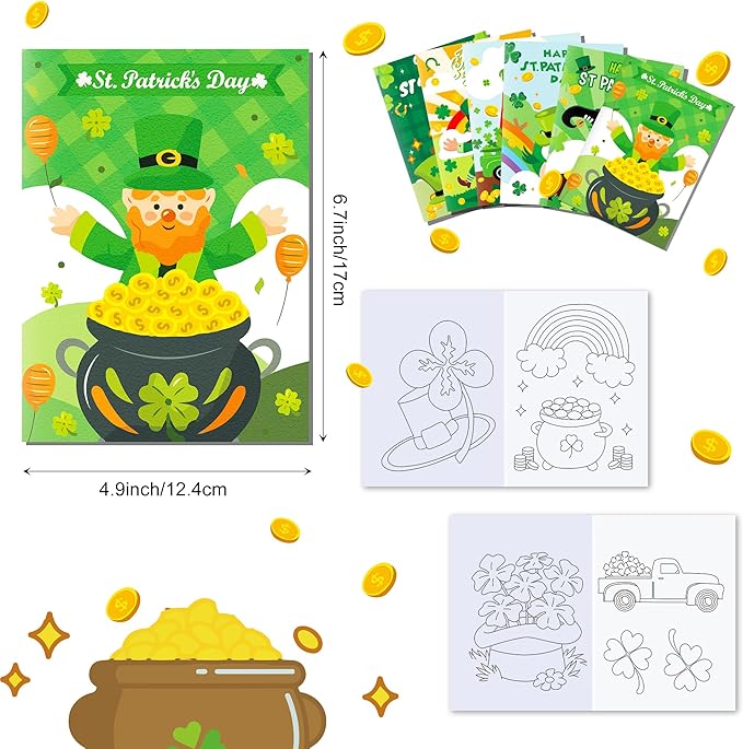 littkeef cliaet 12 Pcs St. Patrick's Day Coloring Books Dinosaur Party Favors Bunnies Bulk Mini Coloring Books Bulk for Kids DIY Art Drawing Activity Book Set for Themed Birthday Party Supplies