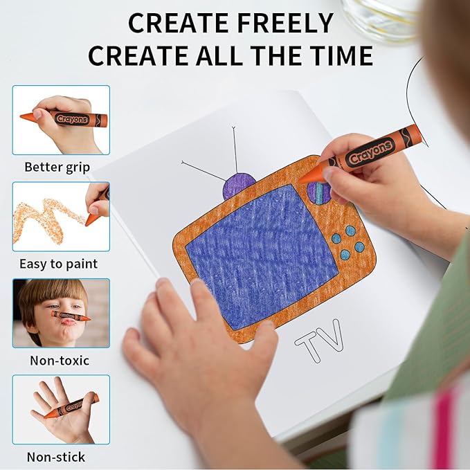 - Smooth Jumbo Crayons: easy to hold for little hands, not fragile, non-toxic does not harm your kid's skin.