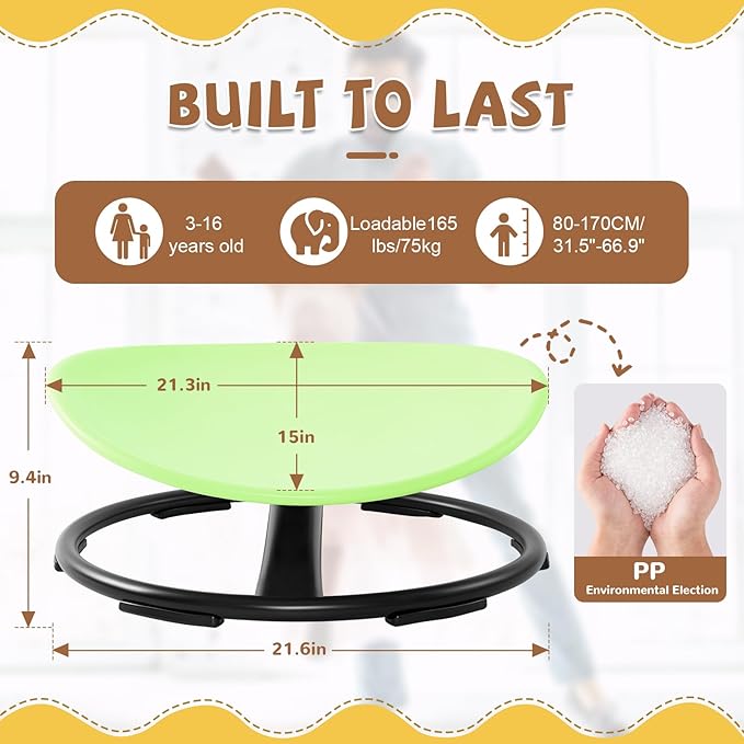 - STURDY METAL BASE: With enhanced load-bearing capacity of up to 150KG, the metal base of the spin chair ensures a safe rotating experience! Non-slip rubber feet design further enhances its stability! Protect the safety of children playing