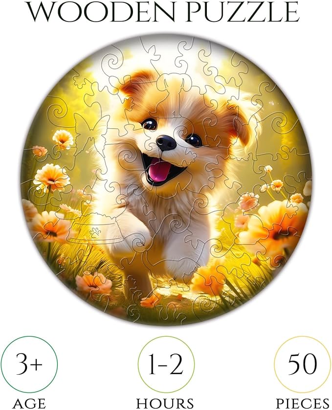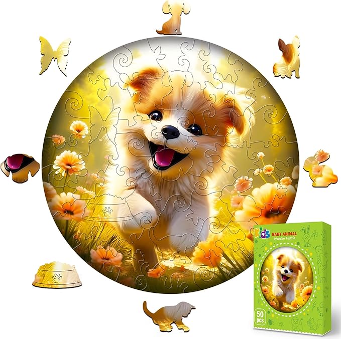 Wooden Jigsaw Puzzles for Kids Ages 4-6, 50 Piece Unique Shape Animal Theme Puzzle - Preschool Learning Educational Toys for Kids 3+, Valentines Day Birthday Easter Gifts for Kids Girls Boys (Puppy)