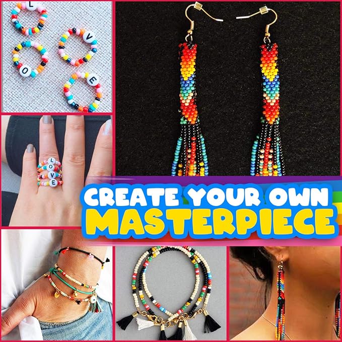 - SUITABLE FOR ALL AGES : Kids, teens, and adults can join in the fun of glass seed beads jewelry making kit. Create your perfect DIY friendship bracelets, necklace, waist beads, and more!