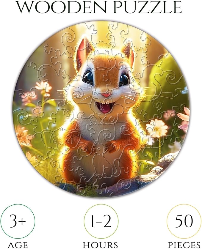 Wooden Jigsaw Puzzles for Kids Ages 4-6, 50 Piece Unique Shape Animal Theme Puzzle - Preschool Learning Educational Toys for Kids 3+, Valentines Day Easter Gifts for Kids Girls Boys (Squirrel)