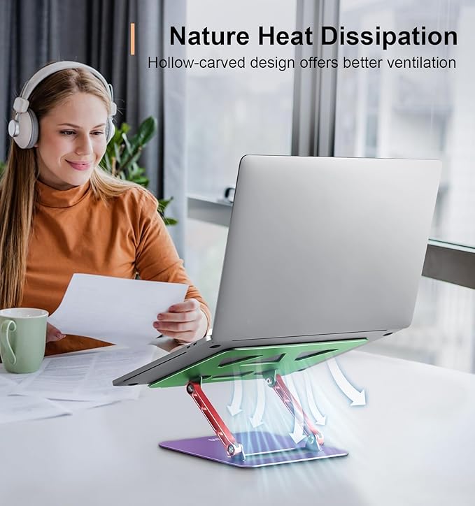 - Ventilation and Cooling: Aoviho computer stand is made of high-quality aluminum, it can absorb and discharge heat easily. The holes on the laptop riser surface will increase the airflow to cool your laptop and prevent from overheating and crashes . This will ensure a longer life for your laptop.