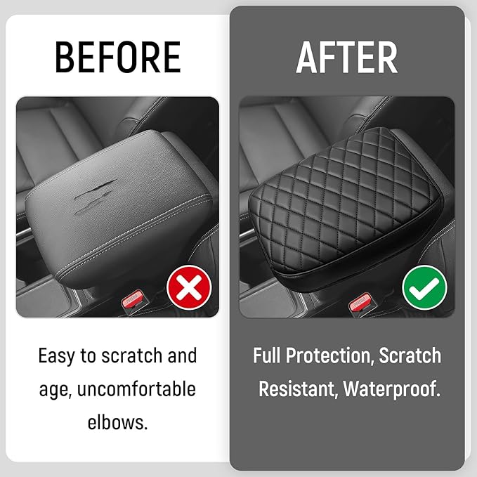 - Durable Protection: Engineered to withstand daily use, our Armrest Cover offers reliable protection against scratches, spills, and stains. Its durable construction and reinforced stitching ensure long-lasting performance, preserving the pristine condition of your center console armrest for years to come