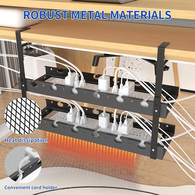 - DURABLE AND STURDY: The Under Desk Cable Management Is Made Of High-Quality Carbon Steel, Which Is More Durable. The Hollow Design Can Effectively Reduce Dust Accumulation, Better Fix The Cable While Maintaining Good Air Permeability, High Heat Dissipation Efficiency, And Avoid Overheating Of Cable Or Power Strip