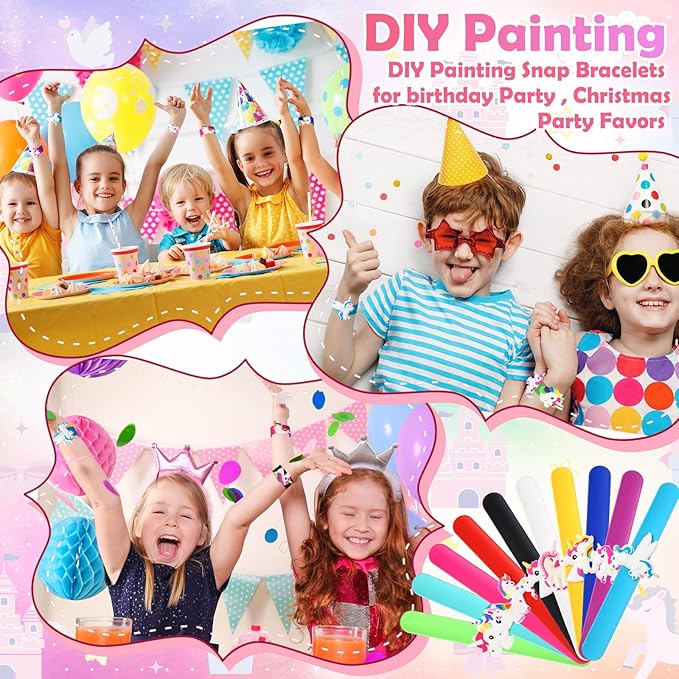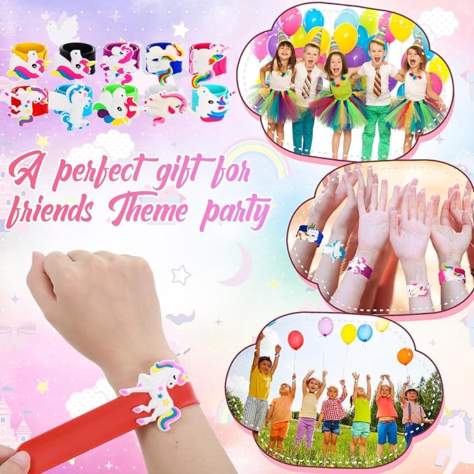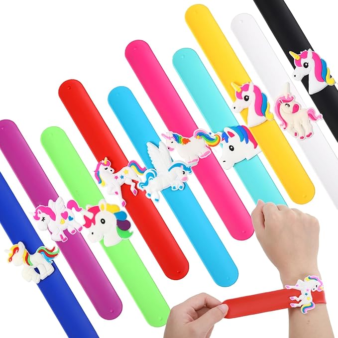 - Party Favors: these unicorn bracelets are suitable for many occasions; Be it for unicorn themed parties, birthday gifts, game prizes, or as a reward for your child, these silicone slap bracelets are the suitable choice; Packaged perfectly with 10 Unicorn slap bracelet, bring a radiant smile to every little face with this exciting party favor