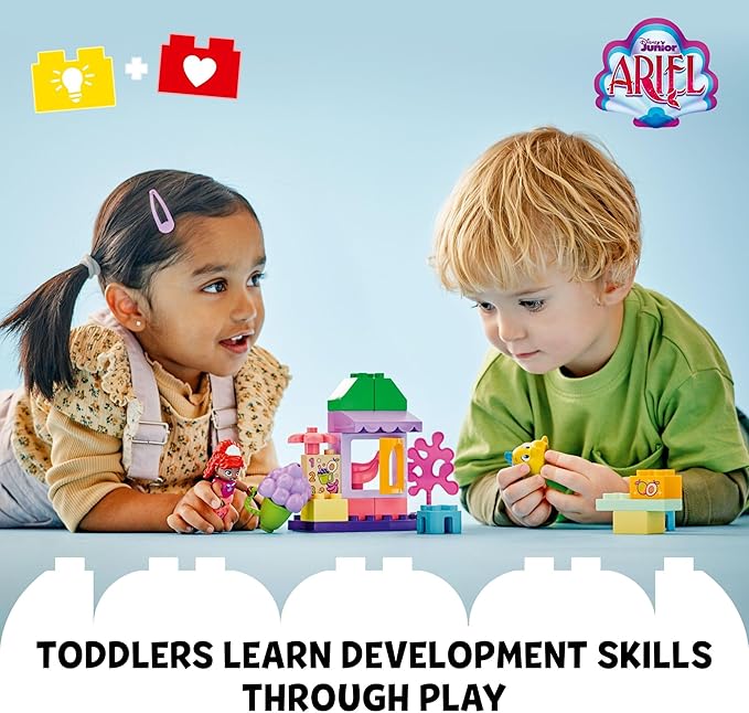 - Construction toy for Little Mermaid fans ages 2 and up – LEGO DUPLO Disney Ariel and Flounder’s Café Stand building toy with fruit elements and kids play food for toddlers