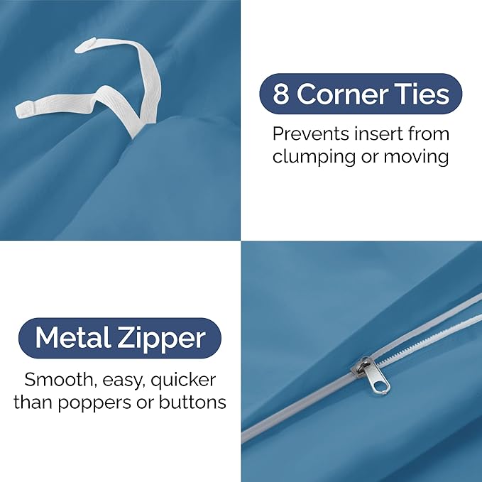 - EASY CARE - ZIPPER CLOSURE & TIES: Designed for hassle-free care, our hotel quality duvet covers and pillow shams stay in excellent condition without the extra effort, making them ideal for busy households. Features 8 ties and a zipper closure to ensure a snug fit and hassle-free maintenance.