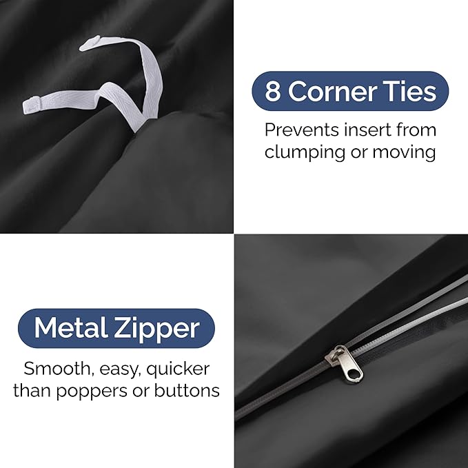 - EASY CARE - ZIPPER CLOSURE & TIES: Designed for hassle-free care, our hotel quality duvet covers and pillow shams stay in excellent condition without the extra effort, making them ideal for busy households. Features 8 ties and a zipper closure to ensure a snug fit and hassle-free maintenance.