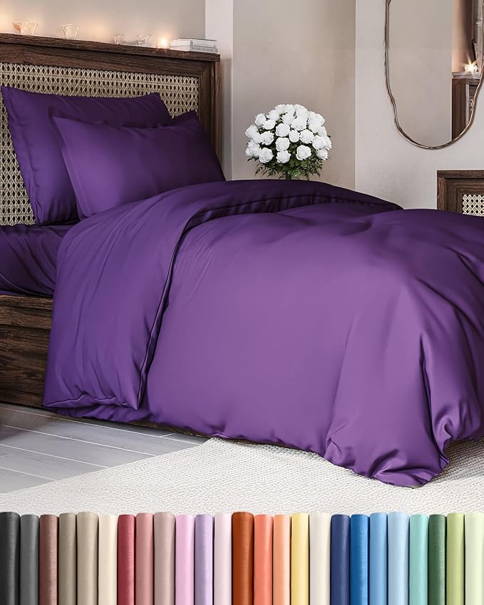 Duvet Cover Twin/Twin XL Size Set - Extra Soft Duvet Cover 68 x 90 with 1 Pillow Sham - Hotel Luxury, Easy Care and Fade Free with Zipper Closures & Ties - Comfy, Cozy Breathable Bedding Set (Purple)