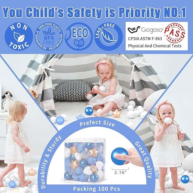 - Material: Our Gogoso ball pits balls are designed with safety-fun in mind. Made from non-toxic materials for babies, toddlers, and children.
