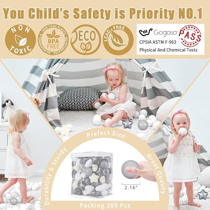 - Premium Quality: Our GOGOSO ball pits balls 100pcs stars and hearts are made made of phthalate-free, BPA-free, and non-toxic materials thicker and more durable materials, each ball capable of withstanding over 140 pounds of weight. Enjoy worry-free playtime!ensuring long-lasting fun for your kids play.
