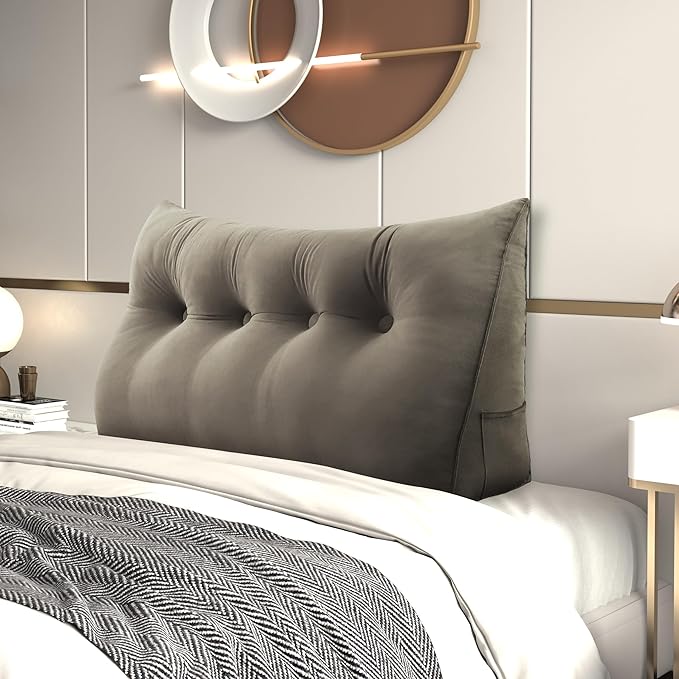 - This large triangular pillow with excellent tufted buttons design,the removable pillow cover is easy to clean; it is comfortable durable, It can be used as a home decoration at the head of the bed and sofa or anywhere you want to rest. 2 Side pockets are convenient and practical,can be placed little things you need.
