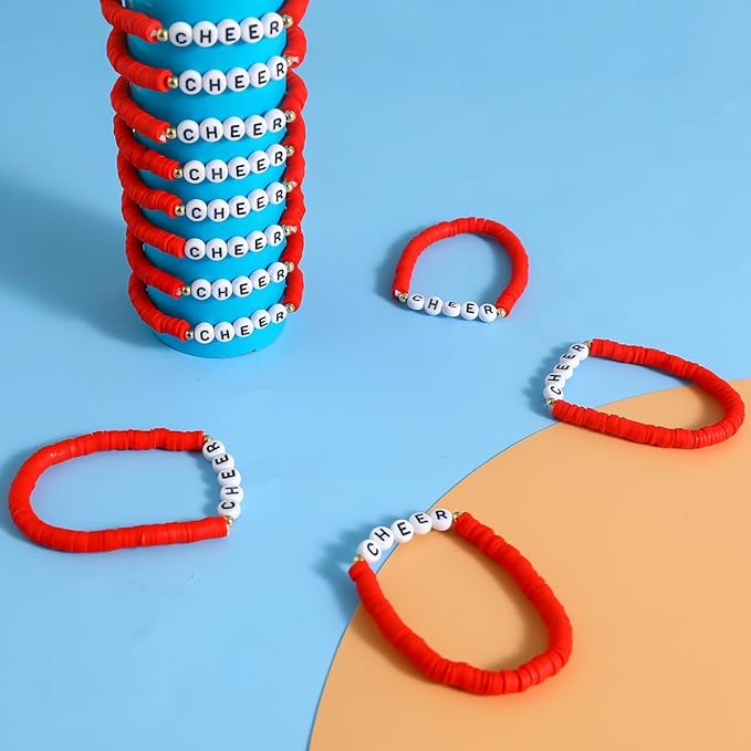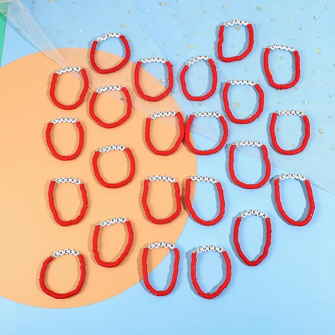 24 Pcs Cheerleader Gifts for Girls Handmade Friendship Bracelets for Teen Girls Stretch Cheer Bracelets Y2k Cheer Stuff Stackable Clay Bead Bracelets Bulk Teens Birthday Christmas Party Favors