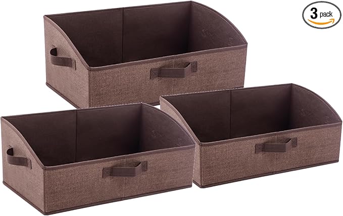 3 Pack Closet Organizers, Foldable Clothes Storage Organizers with Handles, Large Capacity, Sturdy Drawer Storage Boxes for Clothing, Underwear, Books, Shelves, Wardrobe Organizing, Brown